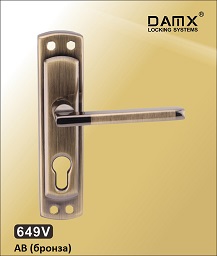 Главная / Дверные ручки на планке DAMX (Эконом) / Под замок 55 мм / DAMX 649V AB/BK Ручка DAMX 649VПланка сталь, ручка алюминий, комплект 2 шт. К замкам ML55P, ML55V и любым другим с межцентровым 55 мм. Квадрат 8 мм, разрезной. | ||||||||||||||||||||||||||||||||||||